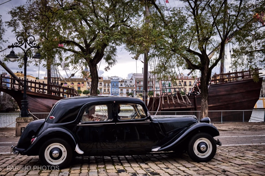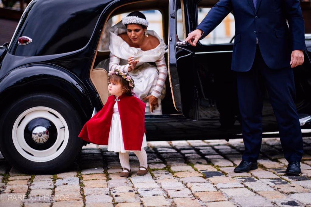 Y por eso propuse también que la pareja se arreglaran en Suites Murillo Plaza de Santa Cruz, un edificio emblemático de Sevilla con solo 8 apartamentos suites en un enclave único. Y para trasladar a los novios desde las suites hasta el lugar de la ceremonia lo hicimos con los coches clásicos de Sevilla Clásicos.
