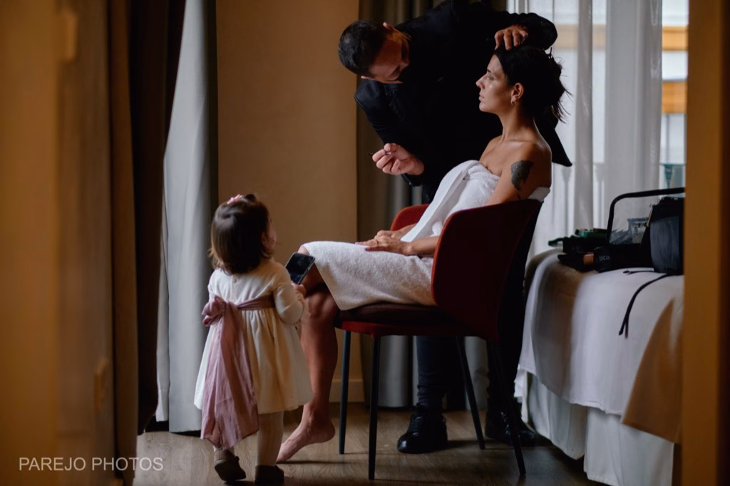 Cuando me uní ya estaba casi completo el grupo de trabajo para preparar esta acción de #SOSnoscasamos: el videógrafo Julio de los Ríos, Lucía Lu de Gones para el tocado y pendientes de la novia, Jose de La Flor de la Pimienta para el ramo y la decoración de la ceremonia civil, el Make Up & Hair gracias a Eugenio Lavado o el diseñador Rafa Díaz para el vestido de la novia y Sastrería 7 para el traje del novio.
