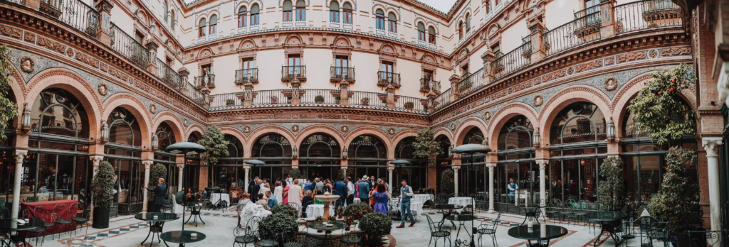 Mi experiencia como wedding planner en el Hotel Alfonso XIII es muy especial y os quiero hablar de ello. Pero quiero empezar explicando que ser destination wedding planner en Sevilla significa mucho más que coordinar un evento. Es comprender las ilusiones de cada pareja internacional, acompañarlos desde la distancia y convertir su boda en una experiencia que conecte con la cultura, la gastronomía y la belleza local.