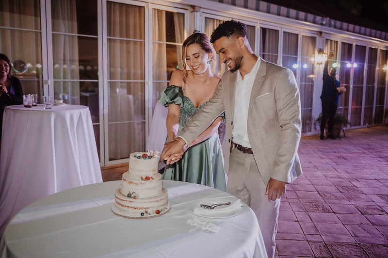 Thelma se cambió 3 veces de vestido. Un primer vestido para la ceremonia civil y la cena, otro para la ceremonia arabe y un último vestido que se puso para el corte de la rica tarta de Ofelia Bakery y comenzar la barra libre. Al igual que Hocine que también se cambió dos veces. Espectacularmente guapos los dos.